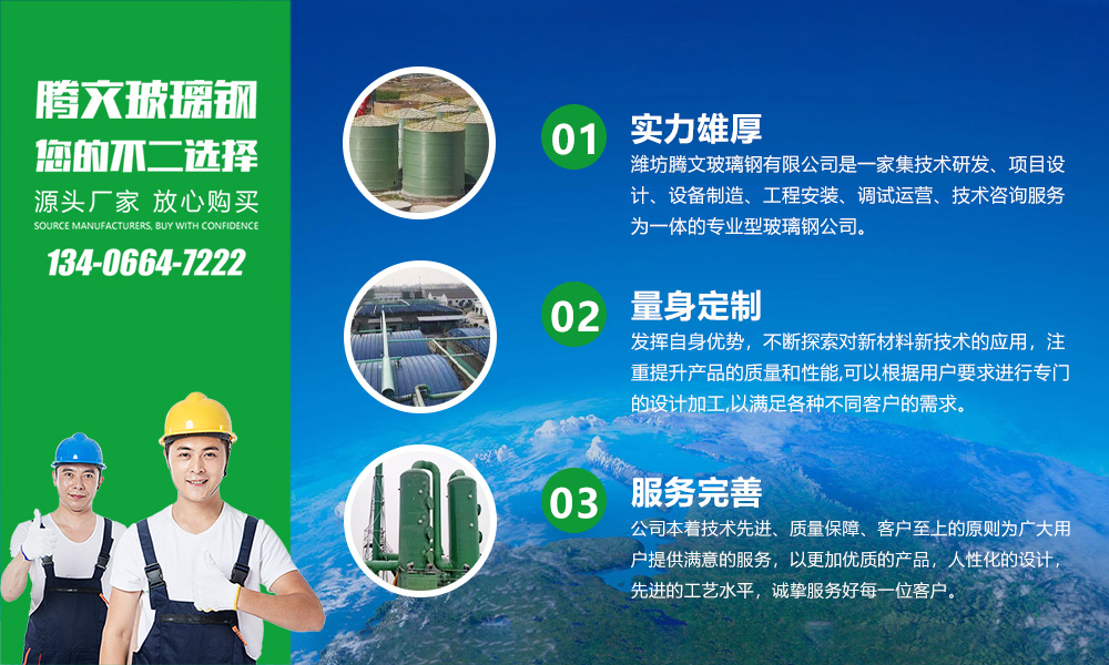 騰文玻璃鋼新聞中心專業(yè)生產(chǎn)制造玻璃鋼容器/儲(chǔ)罐,一體化污水處理/化糞池,脫硫脫硝設(shè)備,玻璃鋼凈化塔,玻璃鋼冷卻塔等